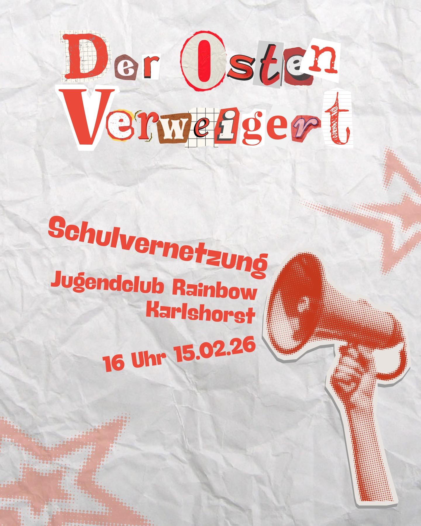 Damit dieser ein wirklicher Erfolg wird, wollen wir uns am 15.02 als Schüler:innen aus dem Osten besser kennenlernen, und zusammen auf den Streik vorbereiten.