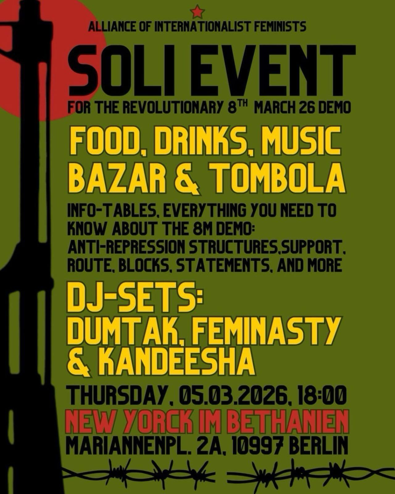 The Revolutionary 8th March demonstration is almost here! We’re hosting a Soli- & Info-Event to make sure we hit the streets informed, prepared and unbreakable.