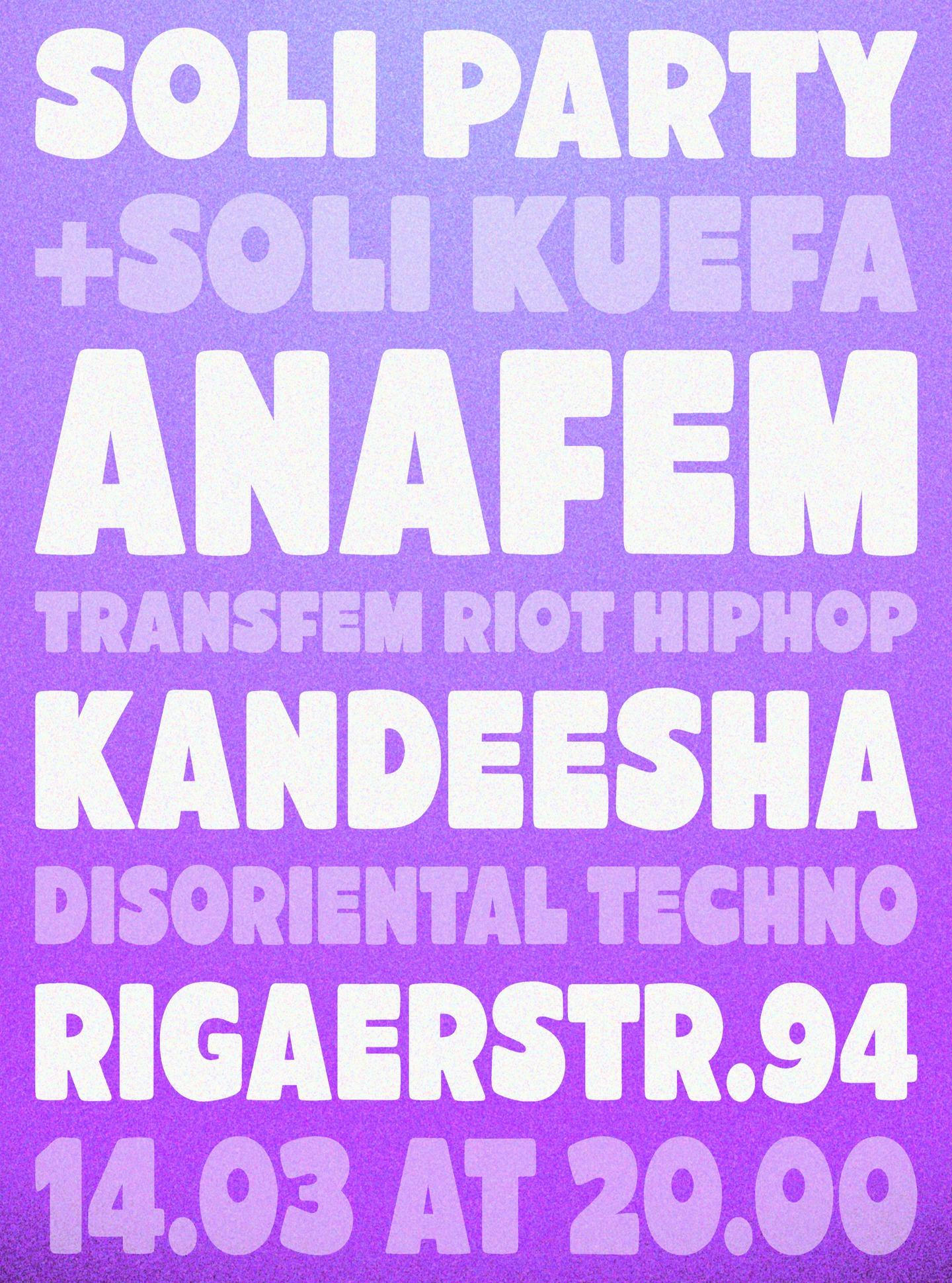 🔊 Solidarity party + solidarity kitchen with Anafem + Kandeesha 🔊