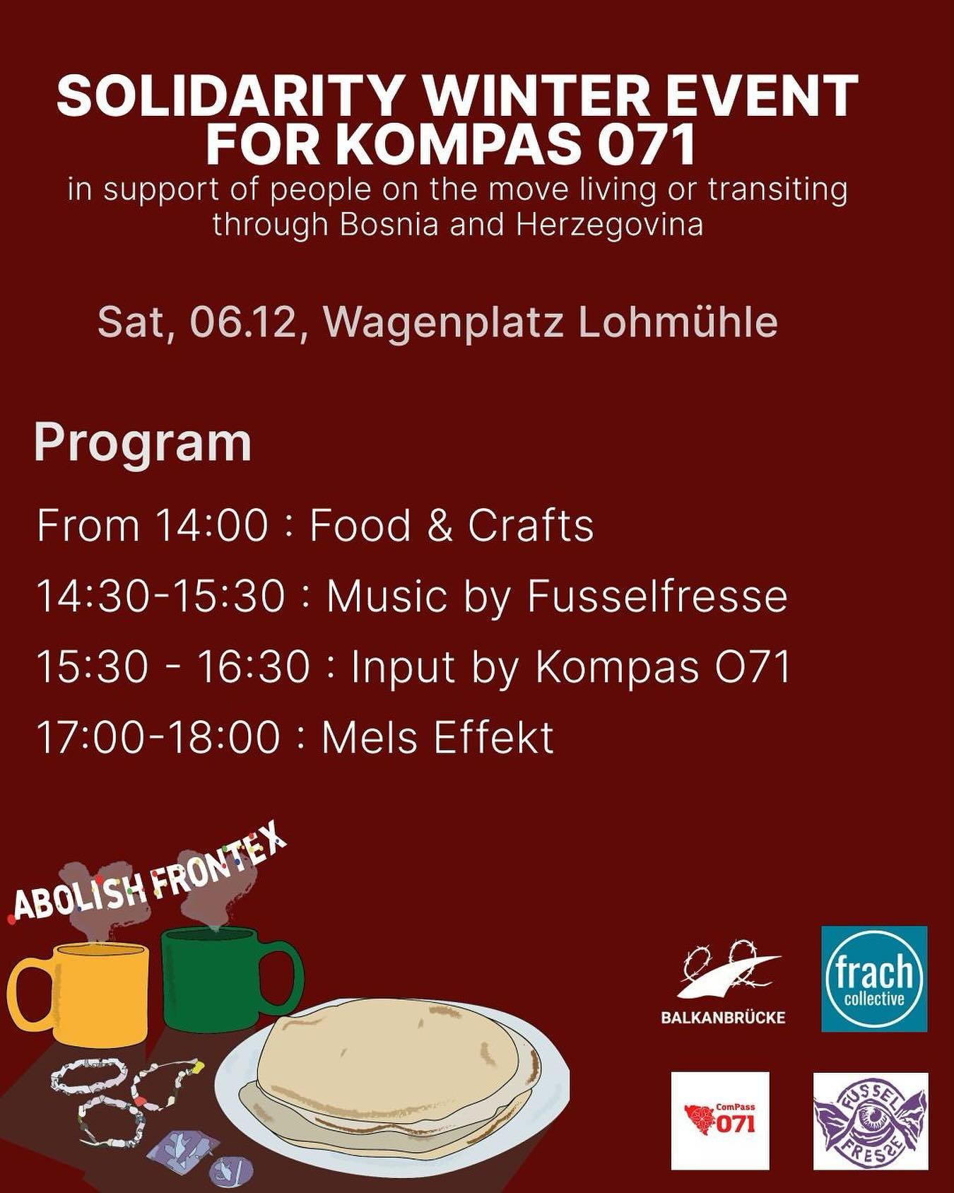 This Saturday, December 6,  @frachcollective  and  @balkanbruecke are organizing a winter solidarity event for @kompas071_sarajevo