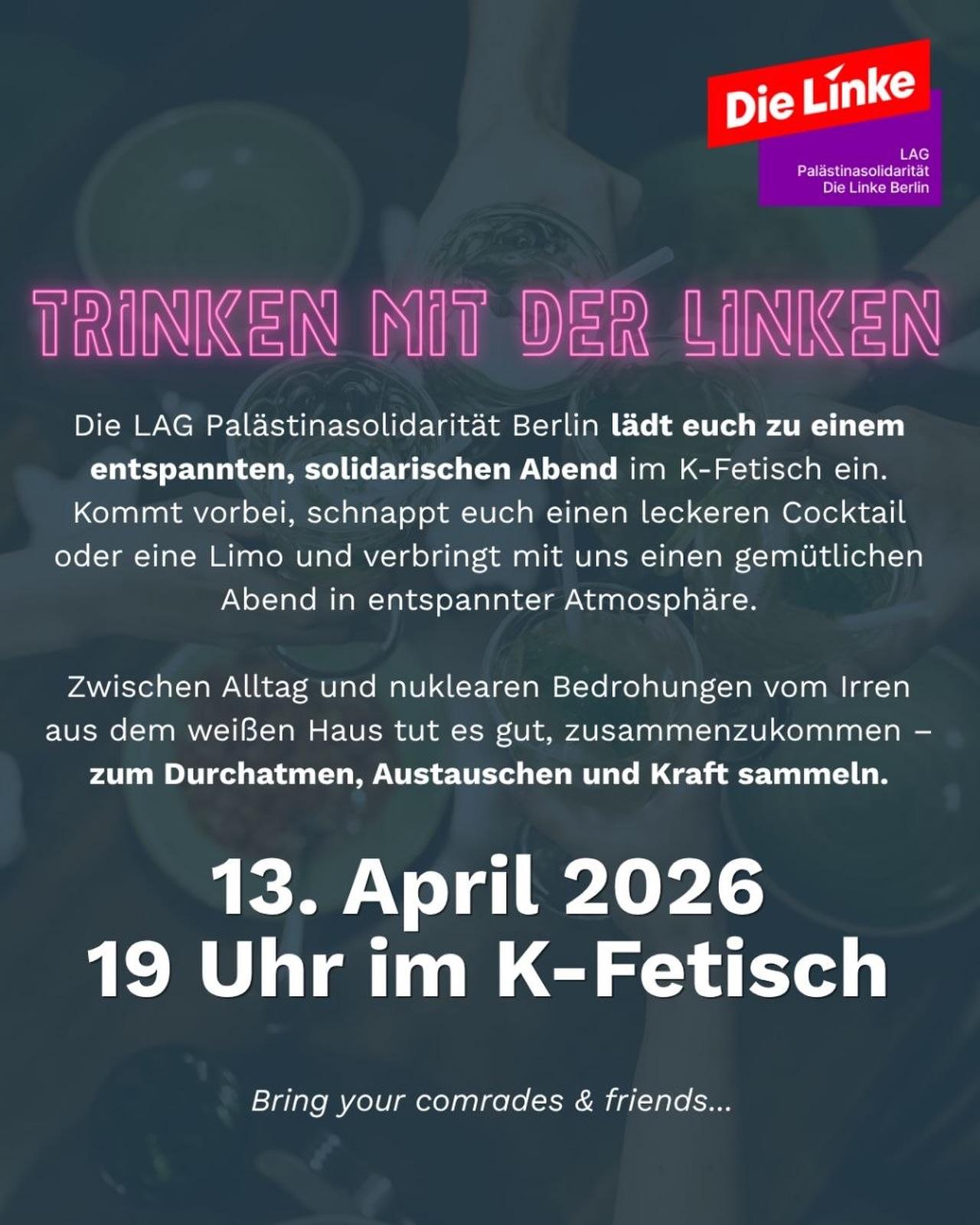🌙✨ Drinking with the Left, organised by the Berlin Palestine Solidarity Group ✨🌙