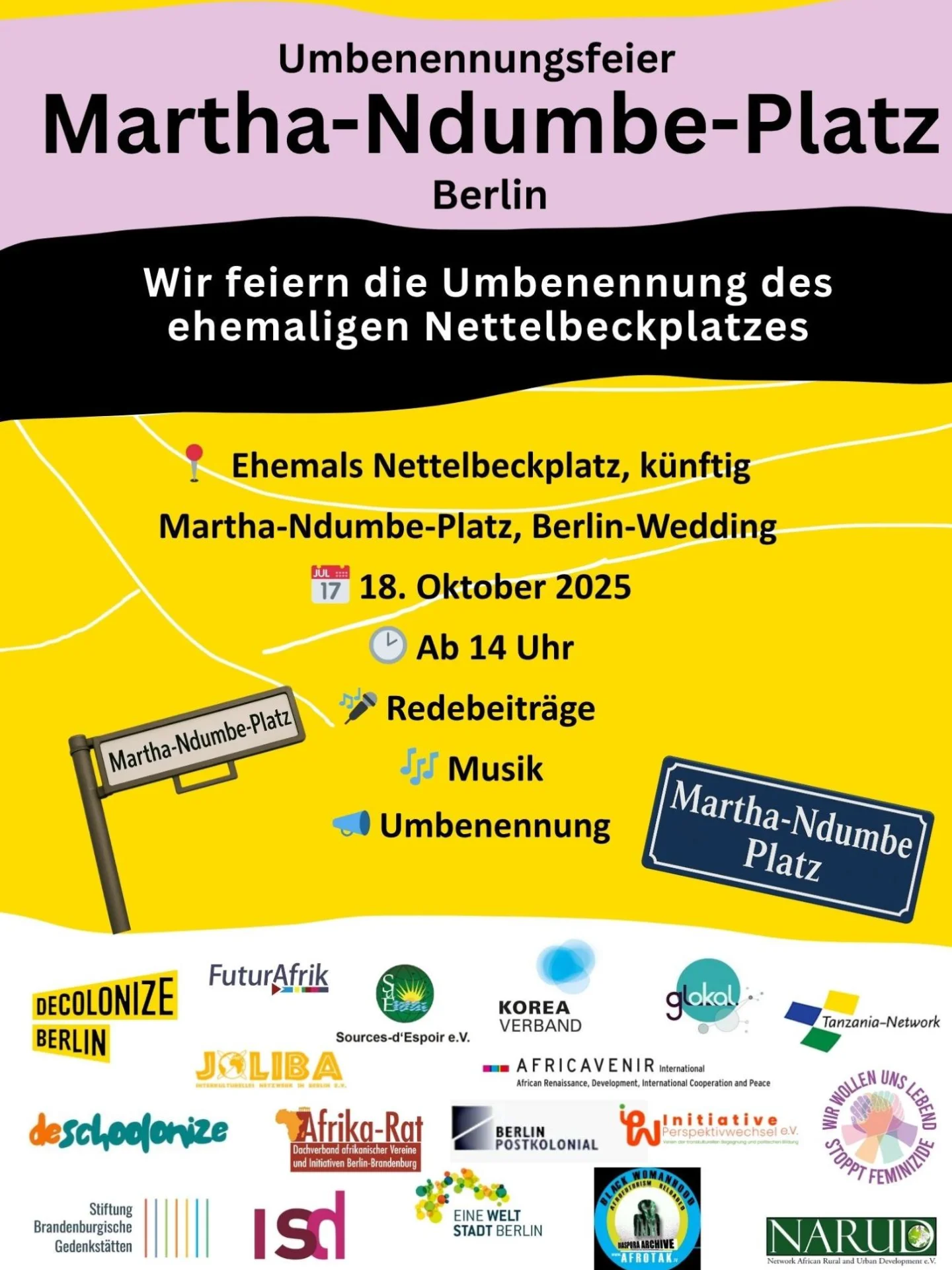Samstag 18.10.2025 | 14:00 Uhr | Martha-Ndumbe-Platz (ehem. Nettelbeckplatz), 13347 Berlin