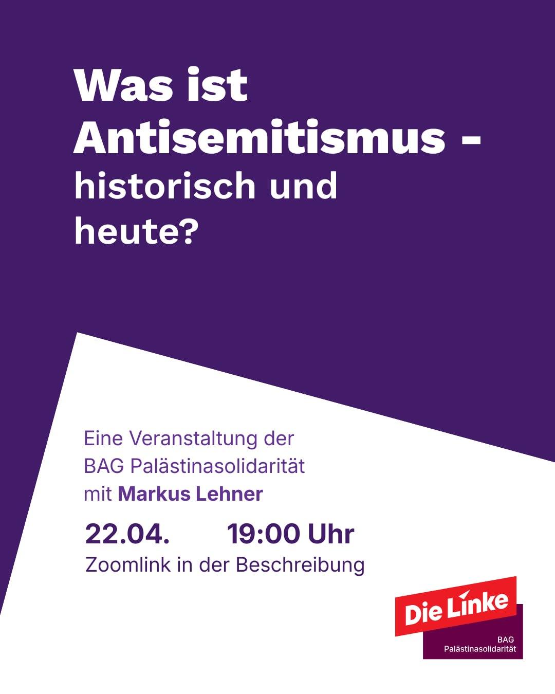 Am 22.04. findet online unsere Veranstaltung „Was ist Antisemitismus- historisch und heute?“ mit Markus Lehner statt.