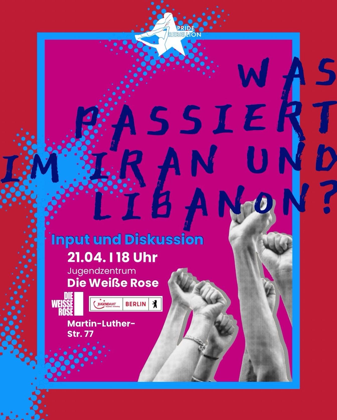 Es wird einen kleinen Input zur aktuellen Lage im Iran und Libanon geben und anschließend eine Diskussion in thematischen Gruppen.
