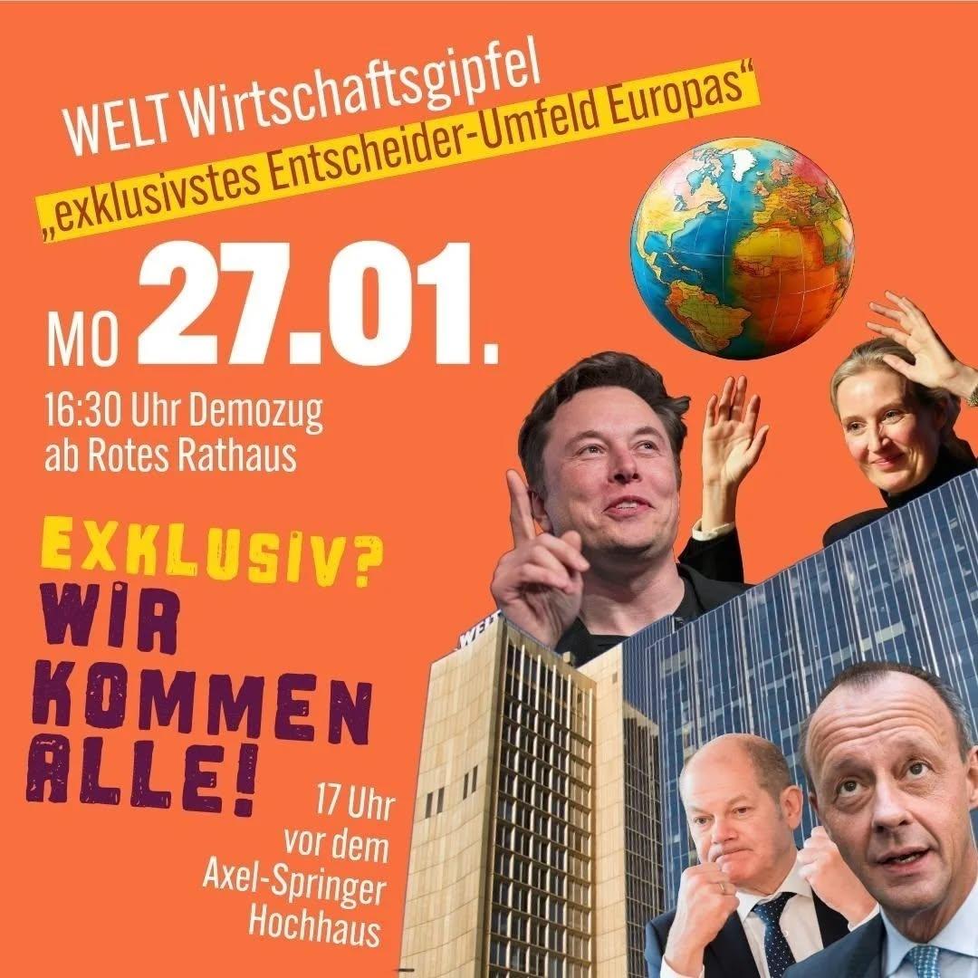🕔 17:00 Uhr: „WELT Wirtschaftsgipfel – wir stehen unter euch!“ vor dem Axel-Springer-Hochhaus