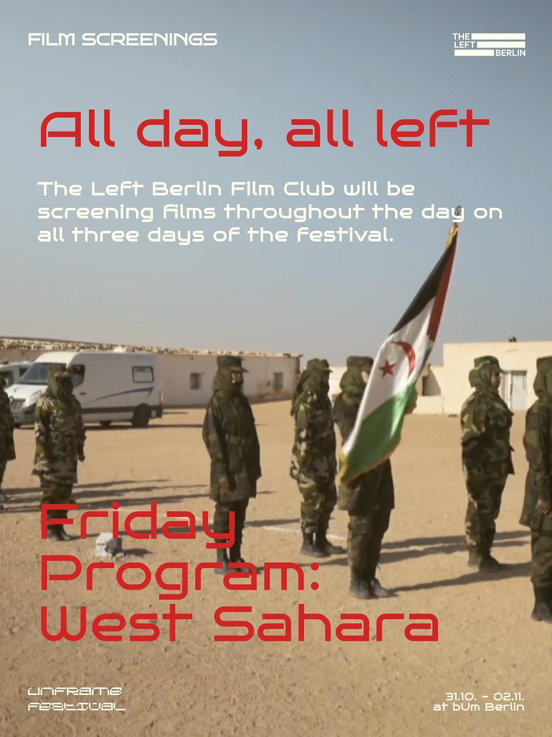 As part of Aktionswochen Westsahara, The Left Berlin Film Club is showing a series of films from and about Western Sahara on Friday, 31st October at the Unframe Festival.