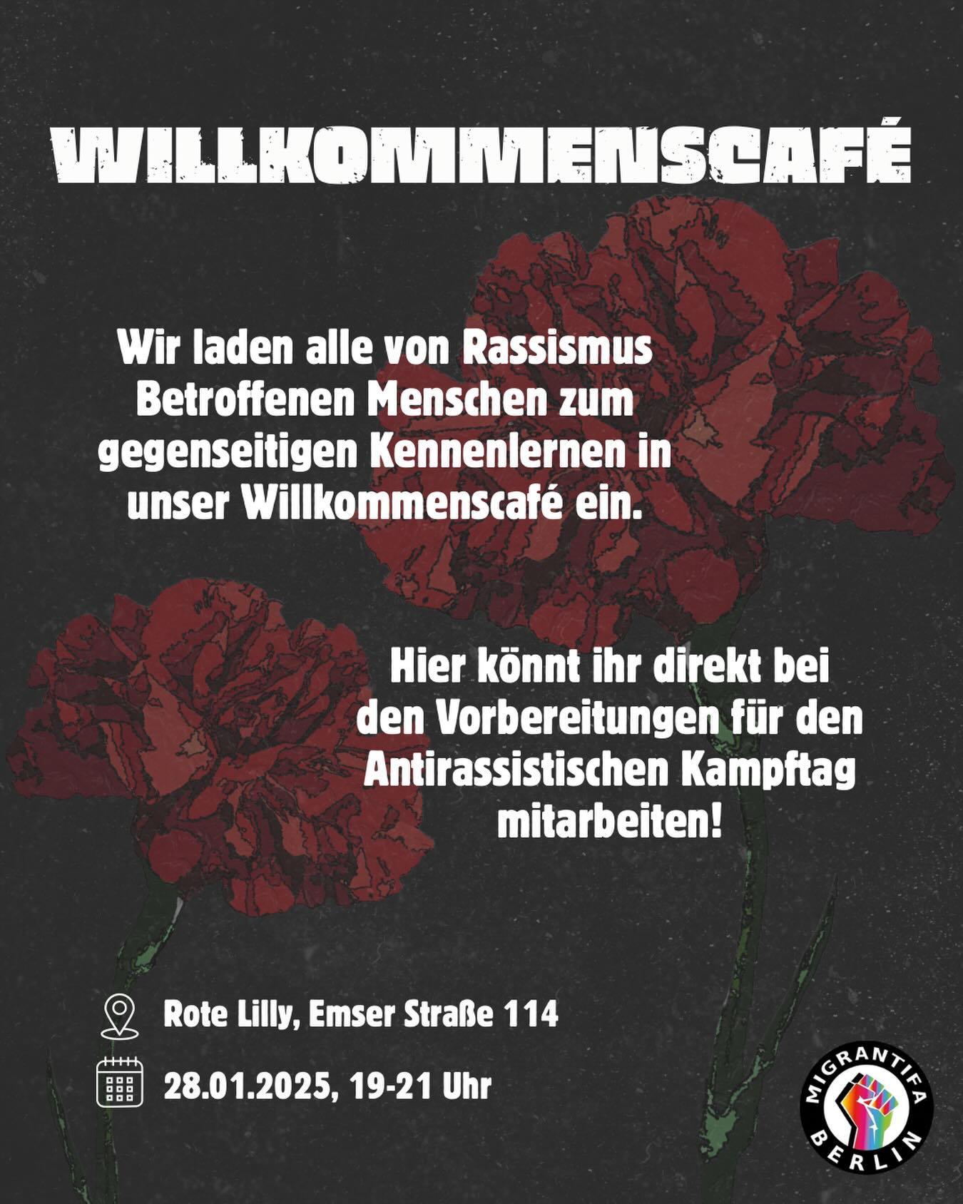 Wir laden alle von Rassismus betroffenen und migrantischen Menschen zum gegenseitigen Kennenlernen in unser Willkommenscafe ein!
