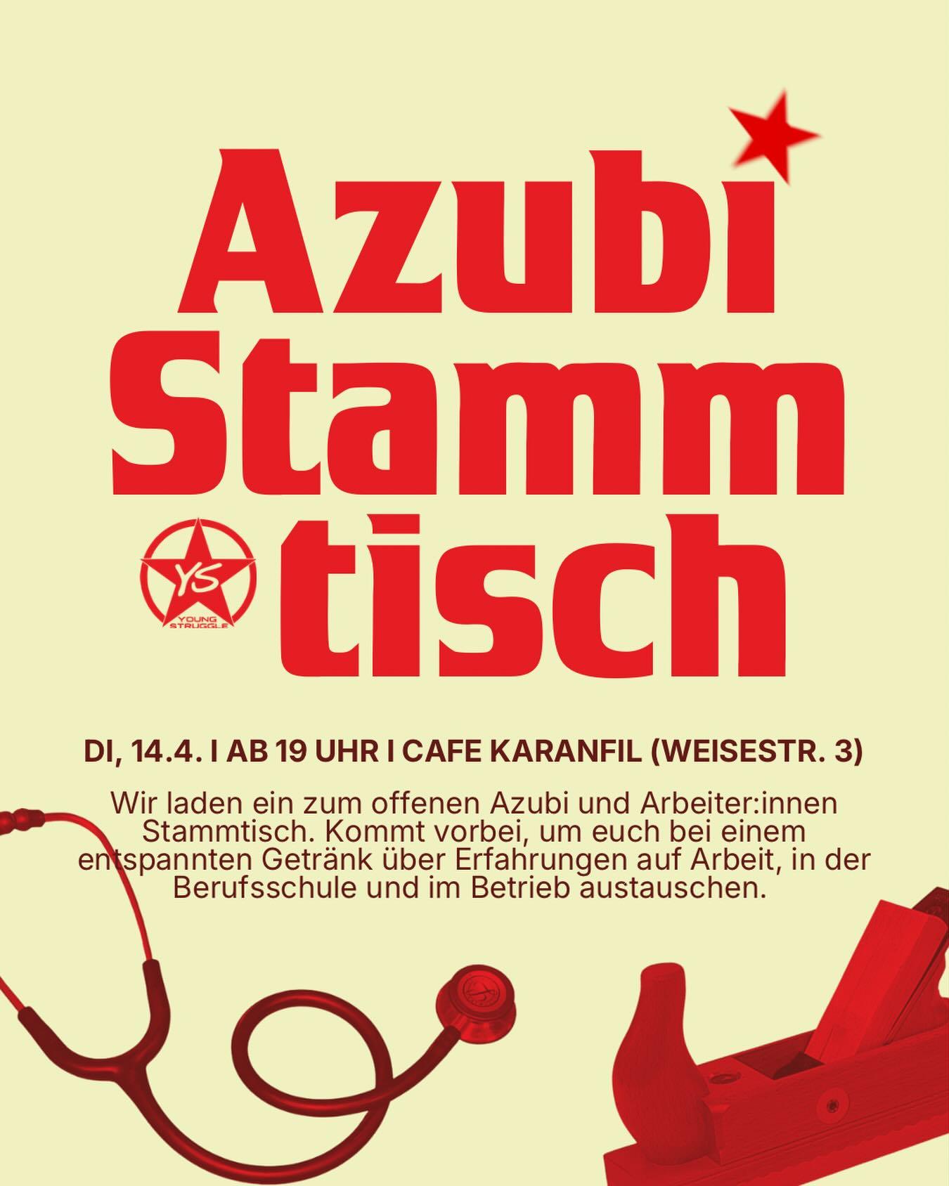 Wir laden ein zum offenen Azubi und Arbeiter:innen Stammtisch anlässlich des kommenden 1. Mai!