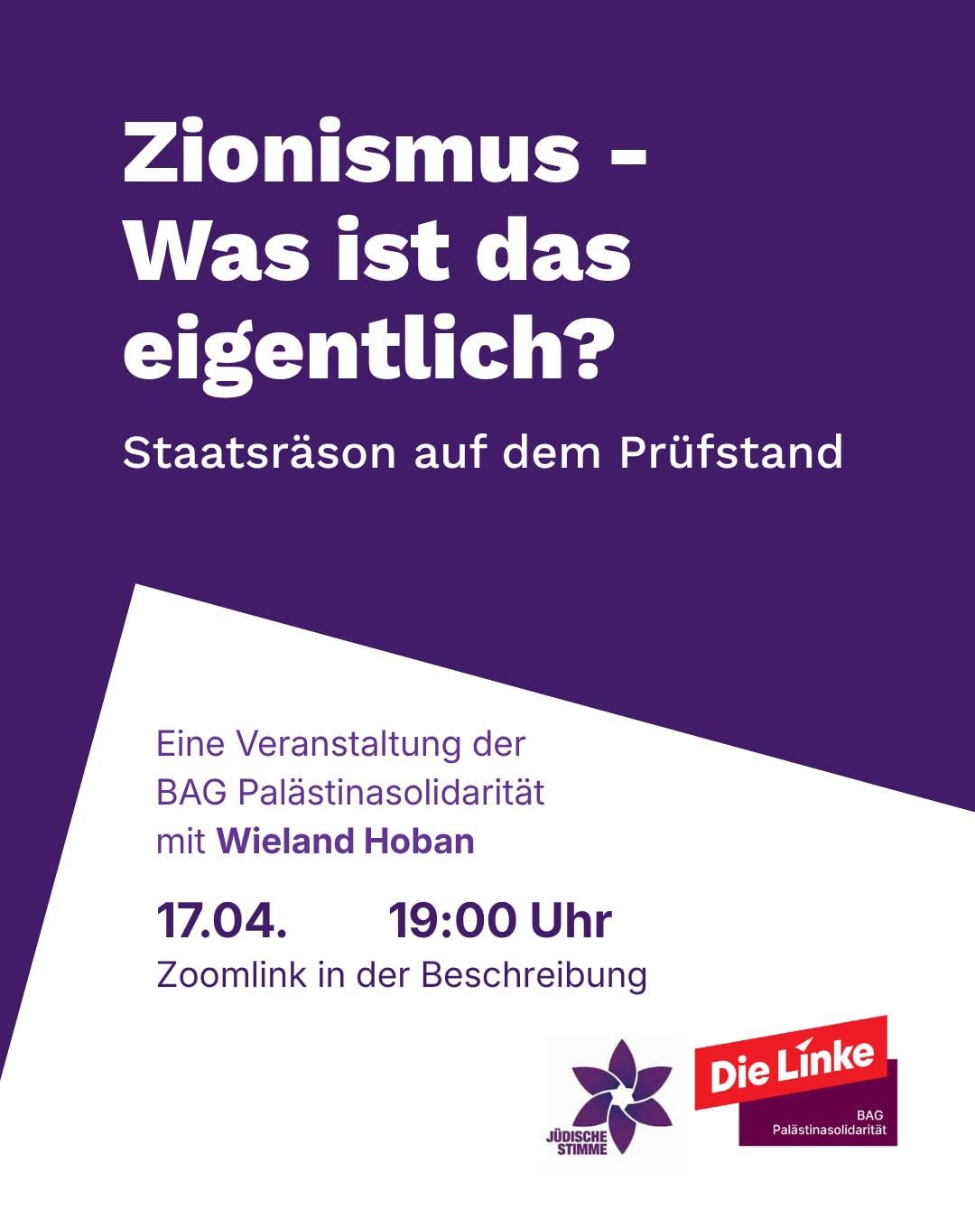 On 17 April, our online event “Zionism – What is it really?” will take place with Wieland Hoban.