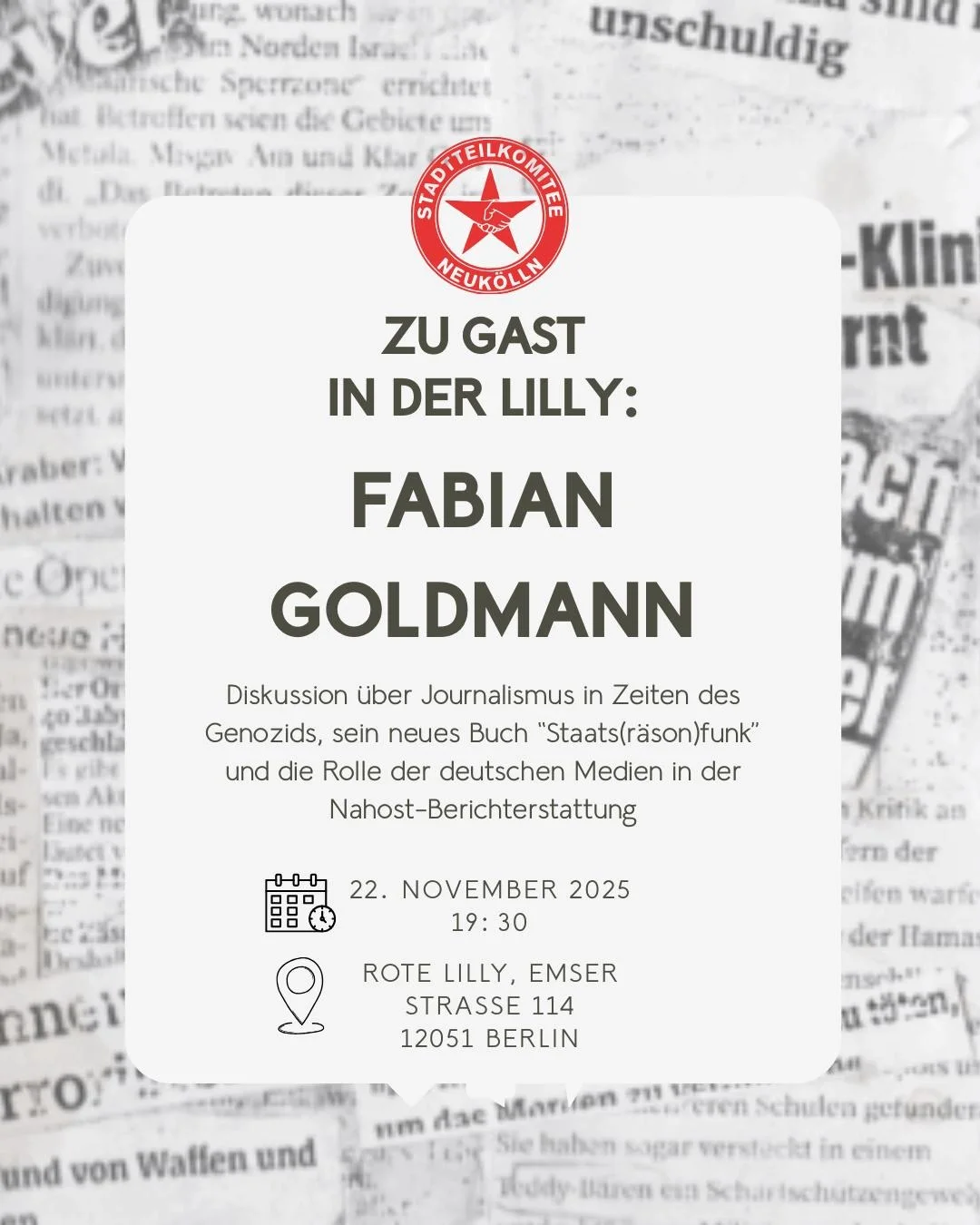 Wir sprechen mit Fabian über Journalismus in Zeiten des Genozids, sein neues Buch „Staats(räson)funk“ und die Rolle der deutschen Medien in der Nahost-Berichterstattung.