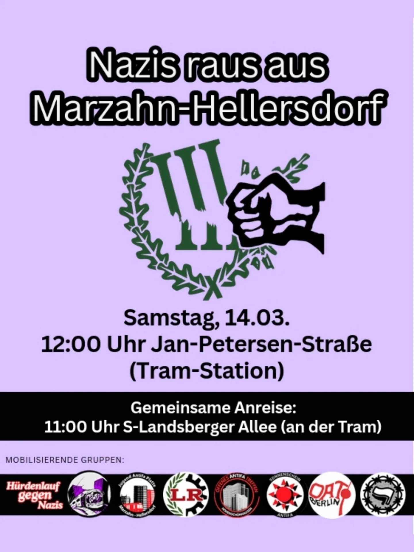 Kommt zu den Vortreffpunkten und passt auf euch und andere auf, da auch zahlreiche Neonazis nach Marzahn fahren werden!