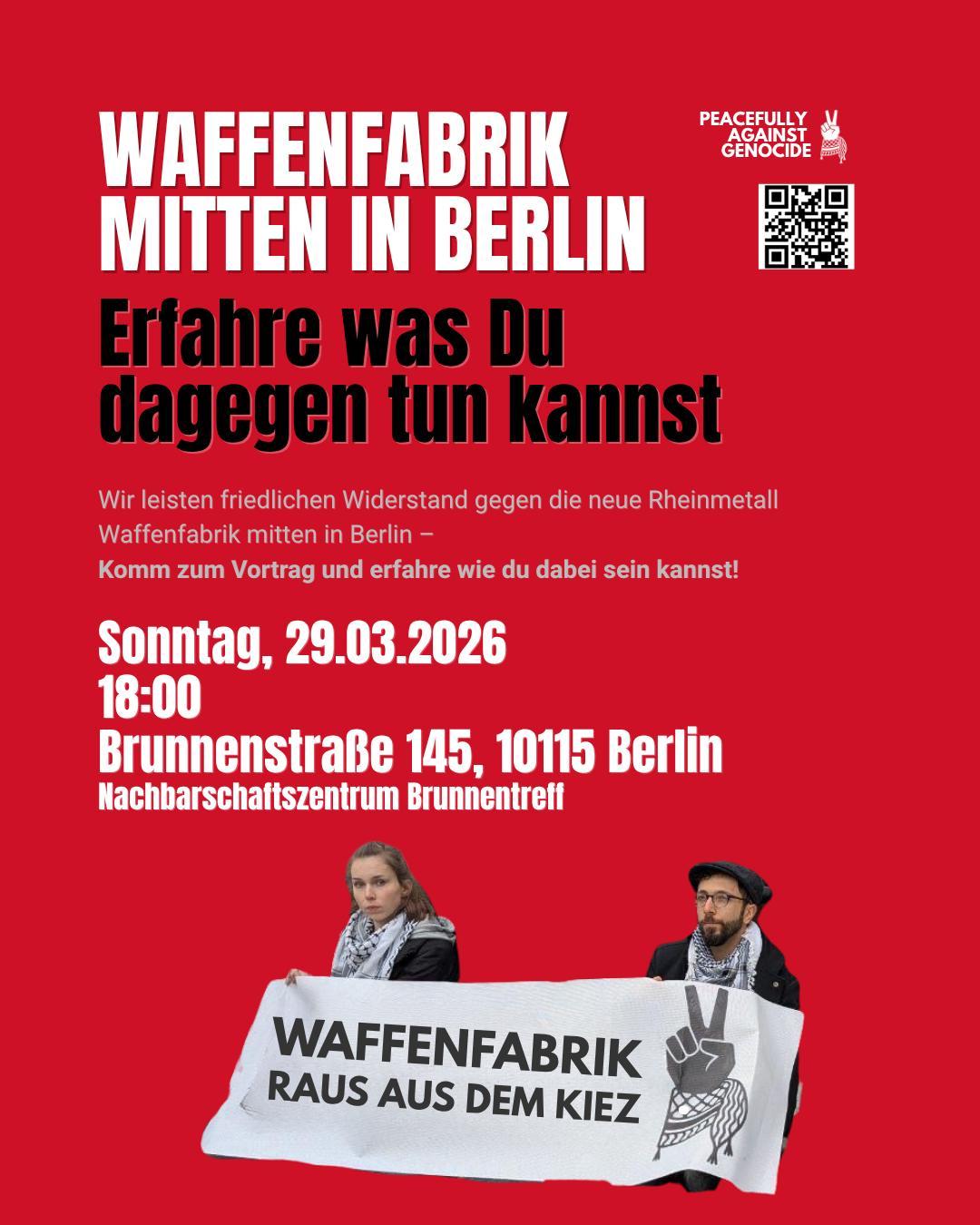 ✊ We are mounting peaceful civil resistance against the new arms factory in the heart of Berlin!
