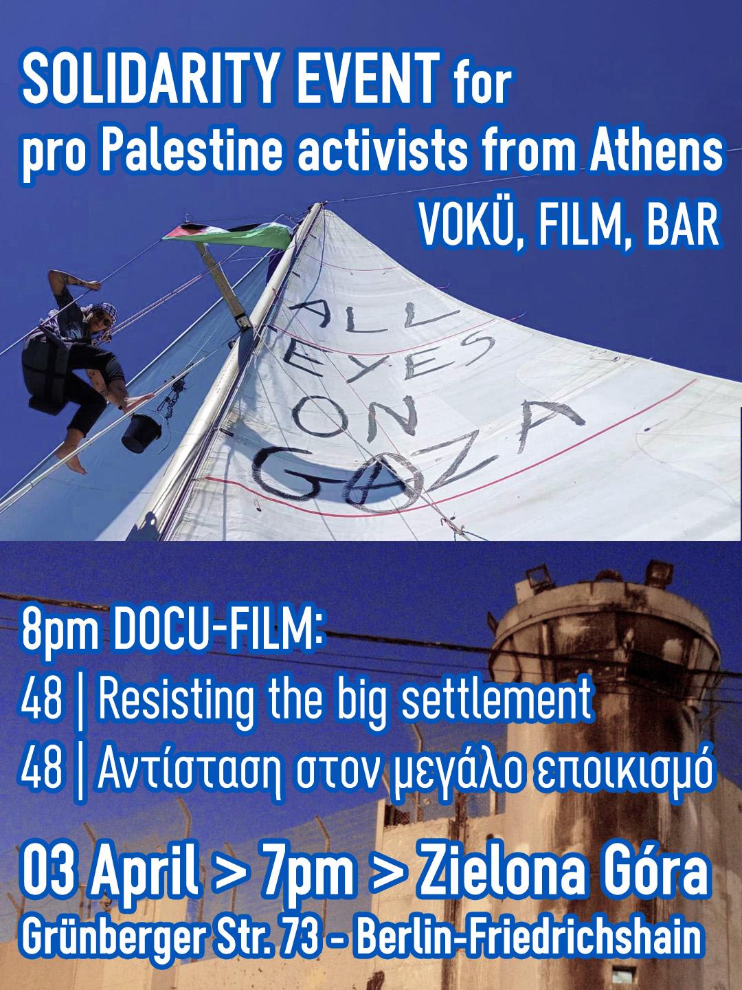 Vokü, Film, Bar: Solidarity for greek pro Palestine activists